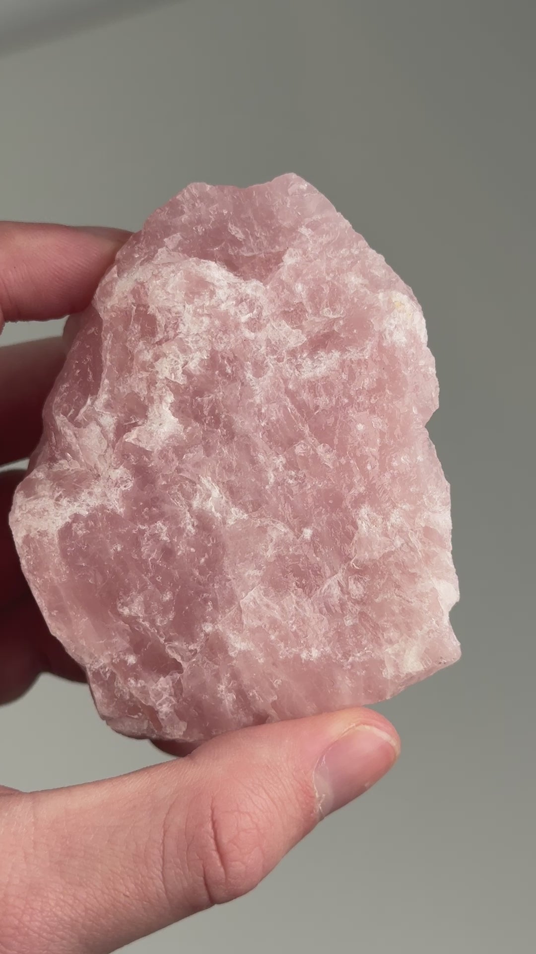 Rose quartz is a gentle, soft pink variety of quartz. This beautiful crystal is found in regions such as Brazil, Madagascar and South Dakota, forming in large masses within pegmatite rocks.