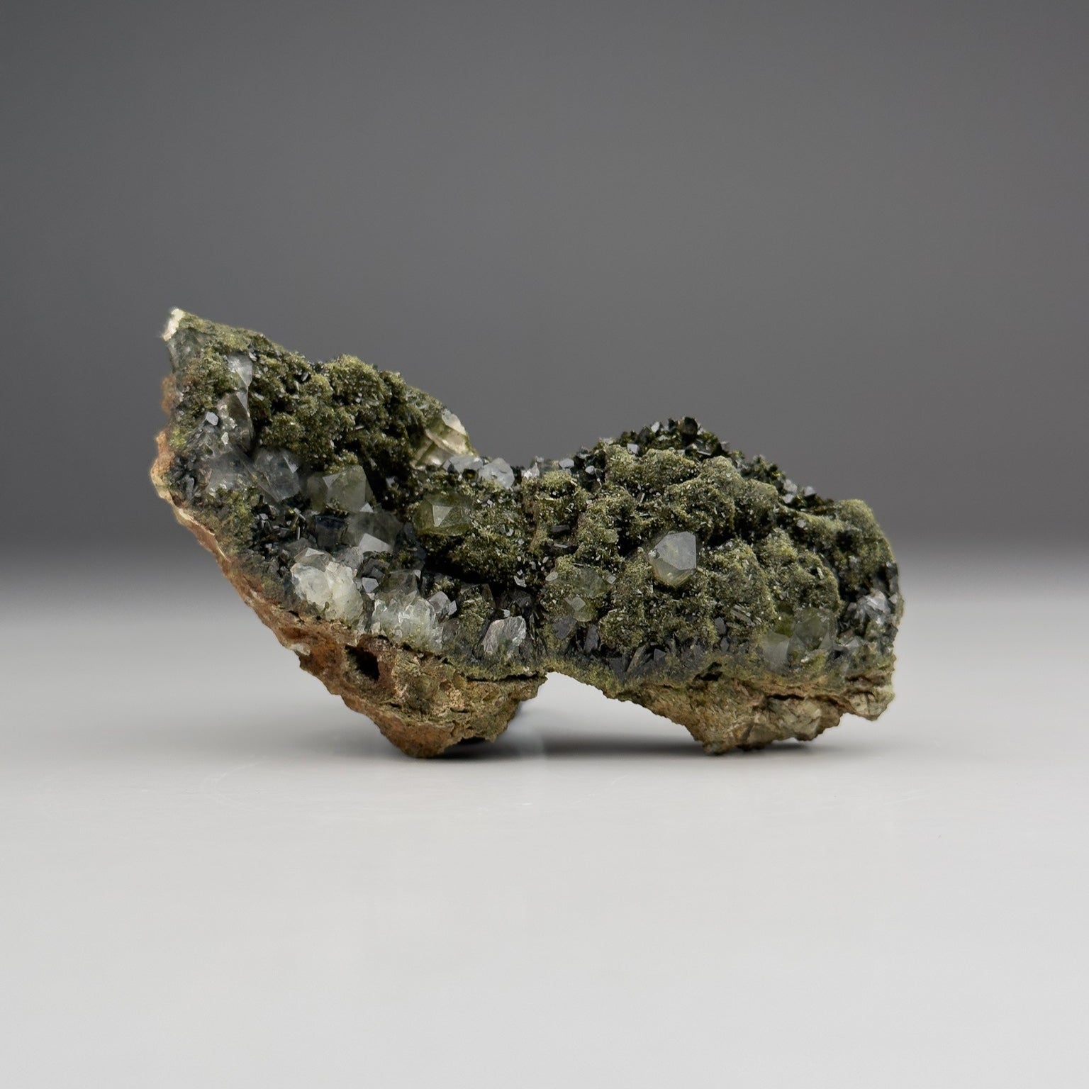 FOREST EPIDOTE CLUSTER WITH CLEAR QUARTZ