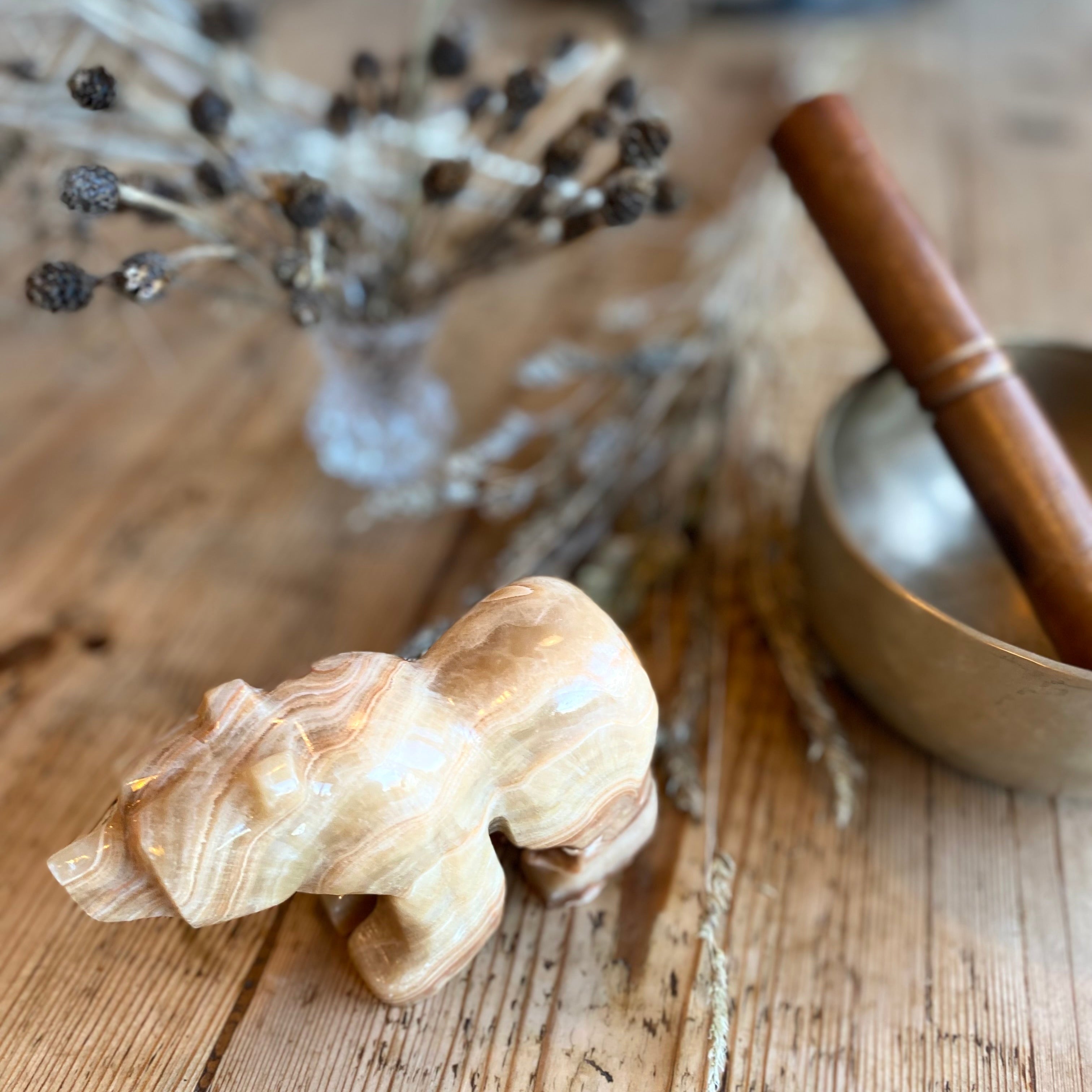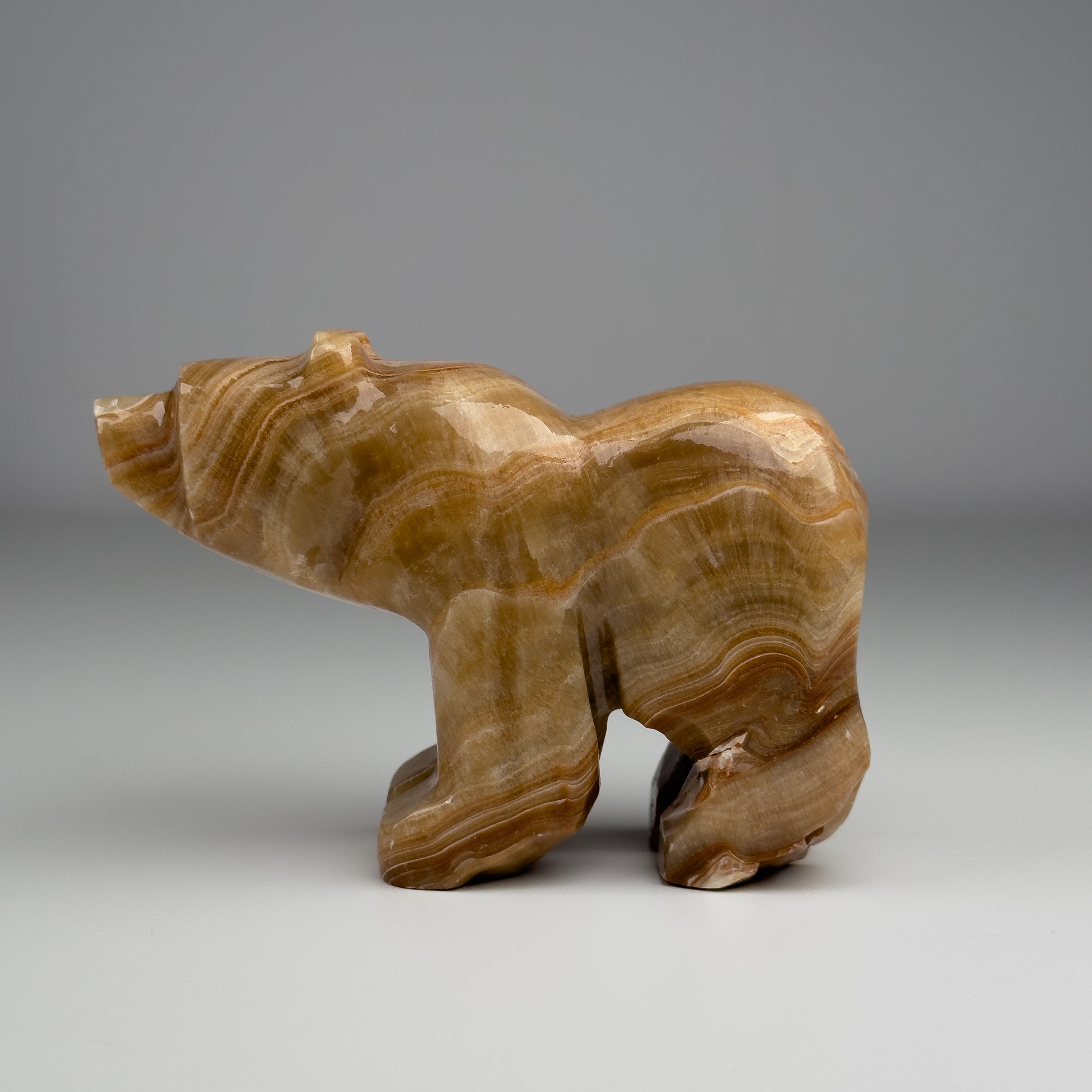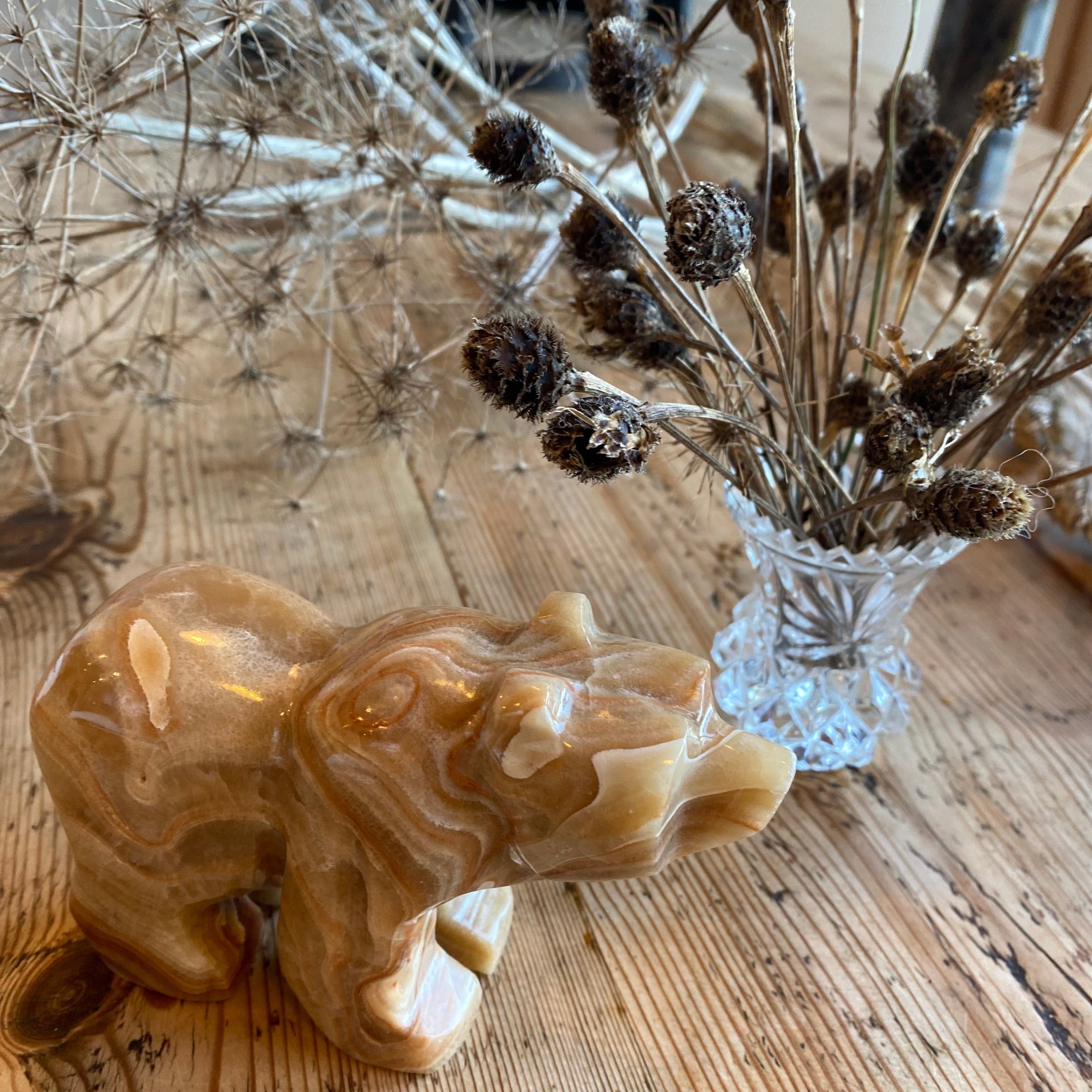 This beautiful, brown, mama bear is crafted from the richest honey coloured onyx.