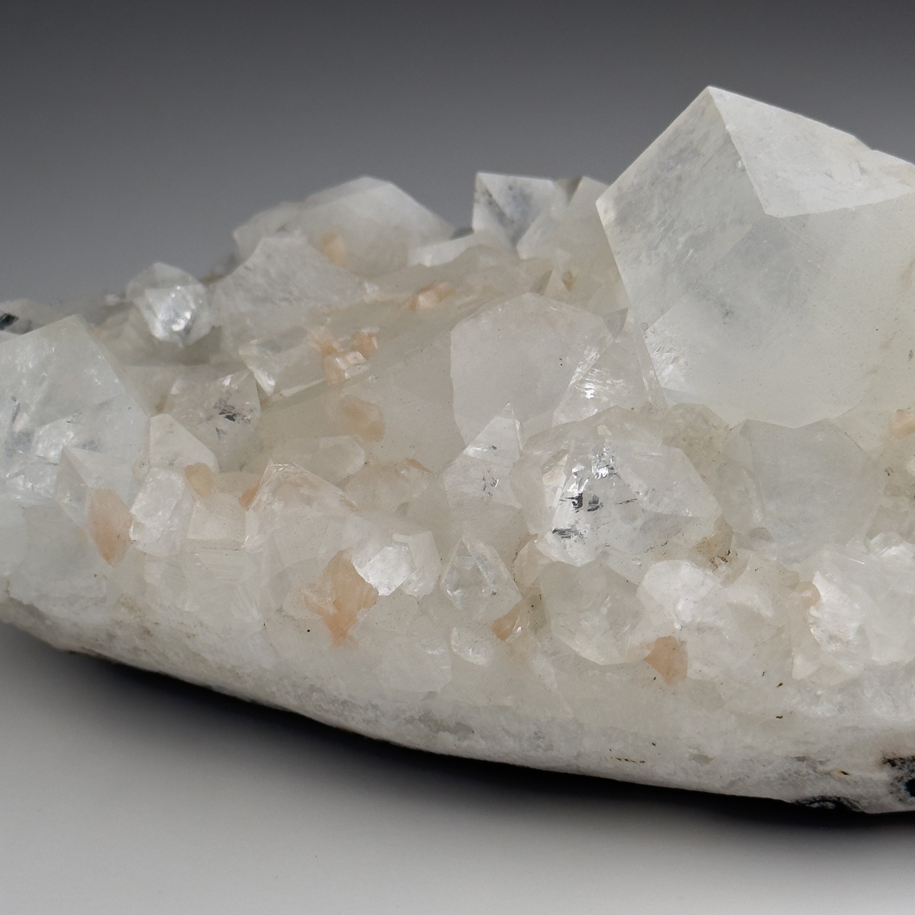 Apophyllite is a crystal admired for her sparkling clarity and delicate beauty. She usually forms as clear or softly tinted pyramids that shimmer with a glassy or pearly glow. Although not as hard as many other crystals, she is treasured for the way she reflects light and seems to capture a sense of brightness within her. Apophyllite is often found growing with other crystals such as stilbite in the cavities of ancient volcanic rocks. Beautiful specimens come from India, Brazil, Greenland and Iceland where she appears in clusters that look almost like frozen light.