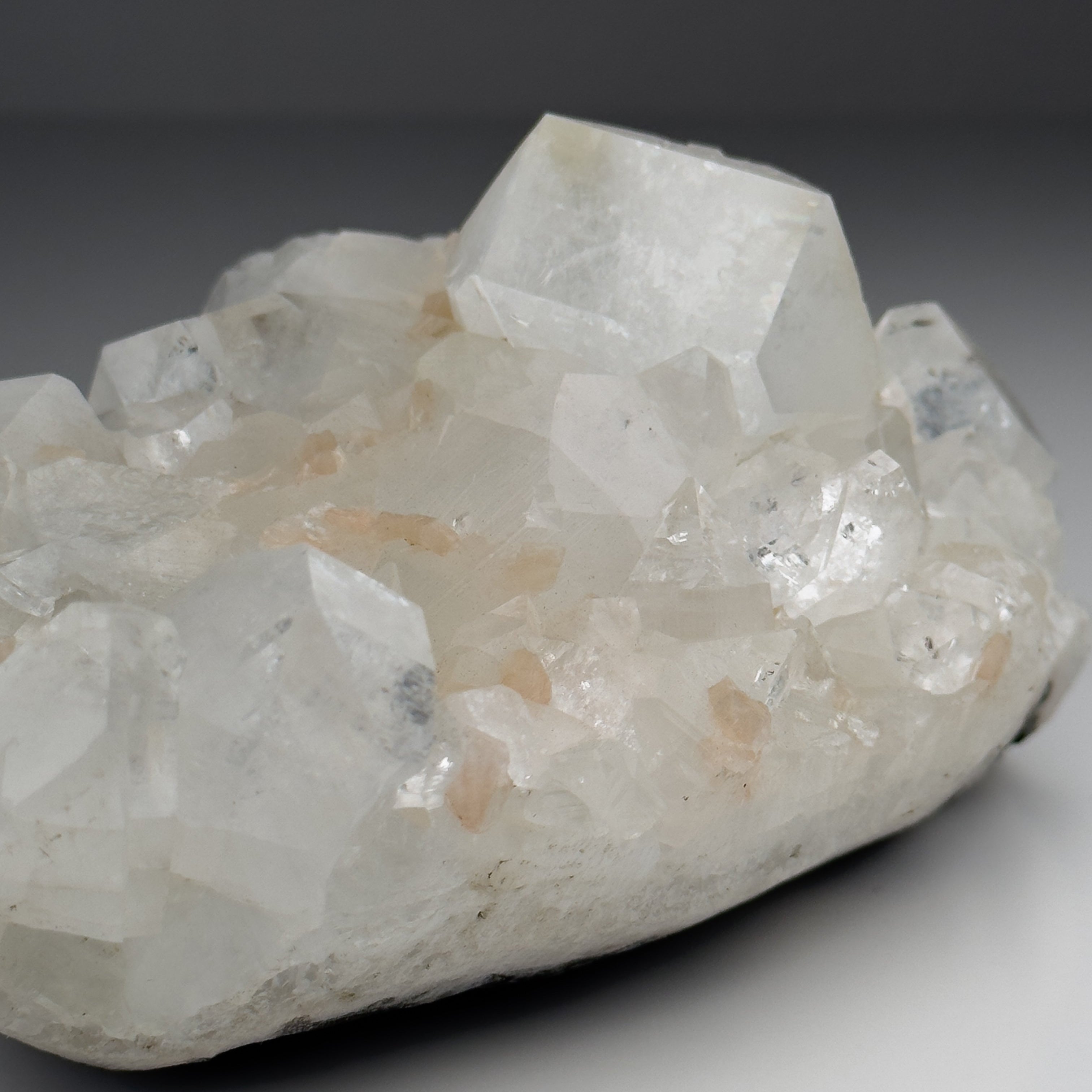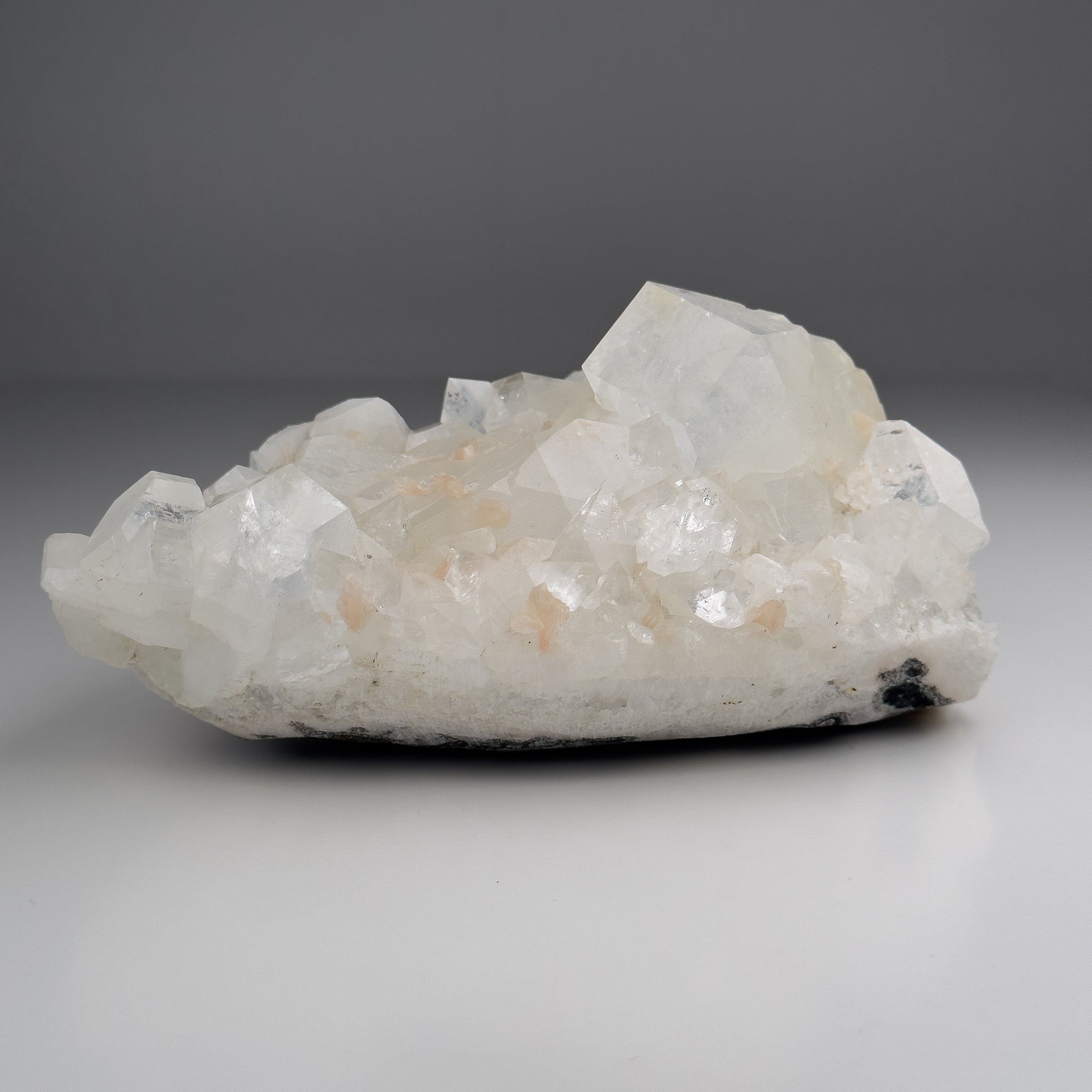 Spiritually, apophyllite is known as a stone of connection and light. She is believed to open a clear channel to higher realms, enhance intuition and promote spiritual vision. Closely aligned with the third eye and crown chakras she is said to create a bridge between the physical and spiritual worlds while also grounding her keeper so that higher guidance can be integrated into daily life.
