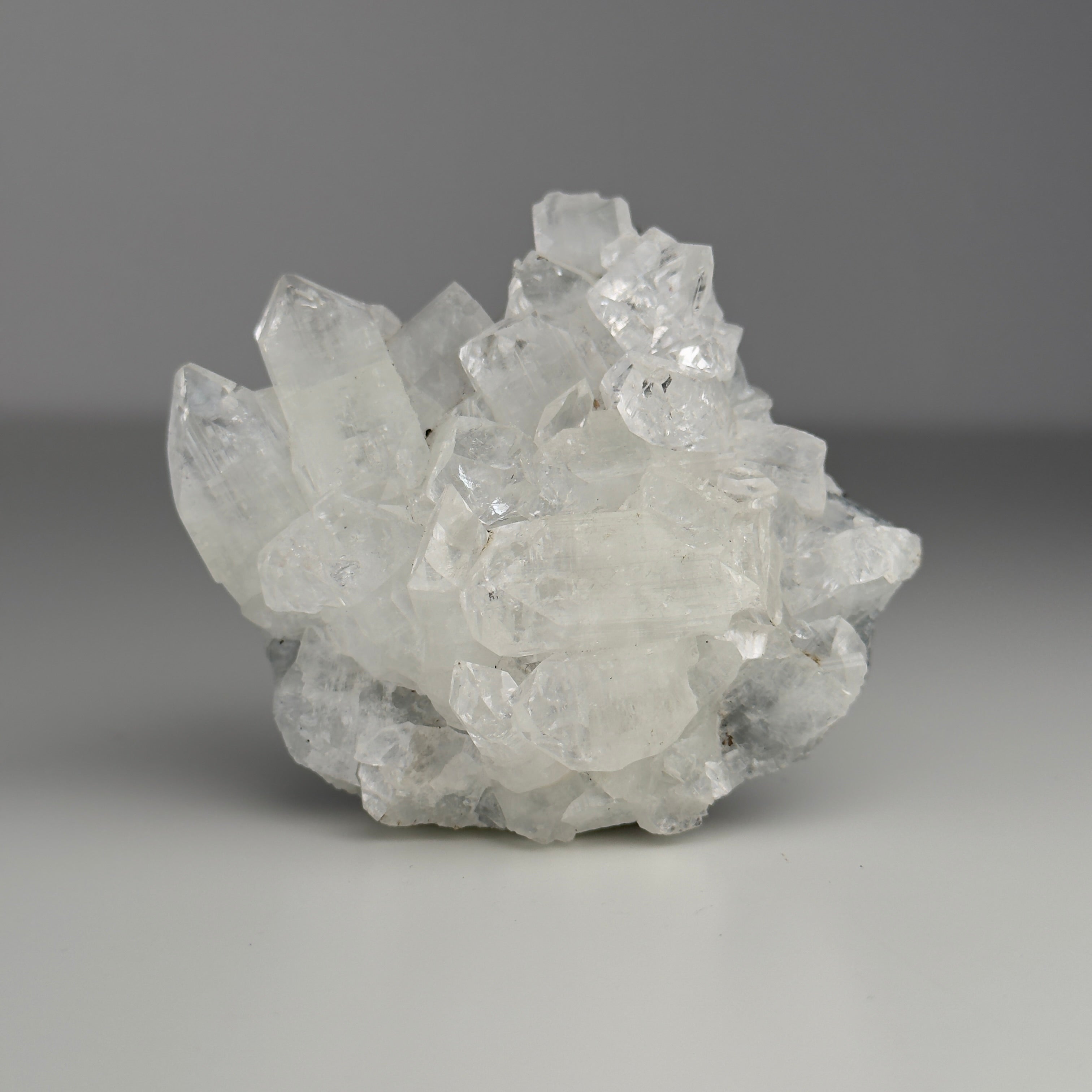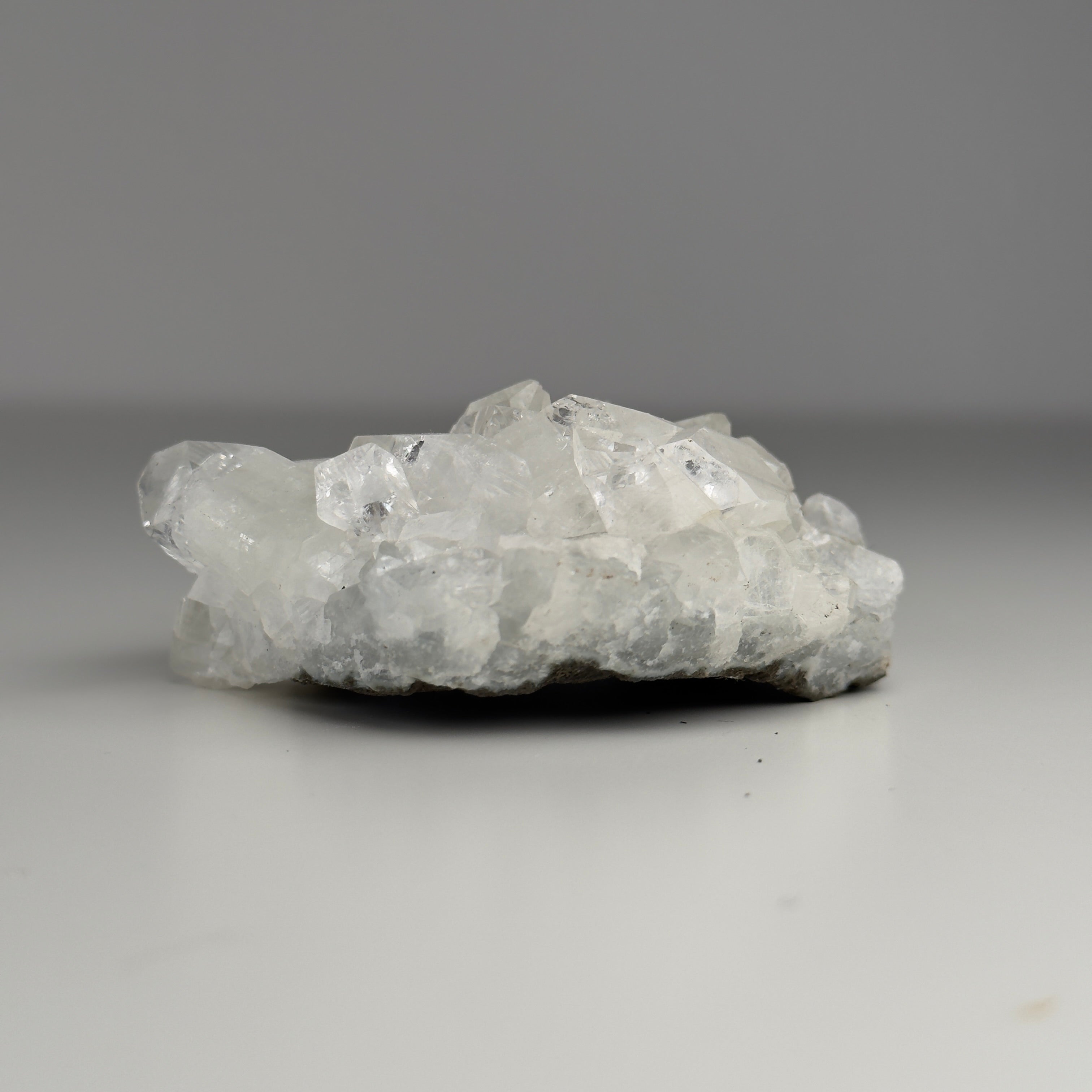 Spiritually, apophyllite is known as a stone of connection and light. She is believed to open a clear channel to higher realms, enhance intuition and promote spiritual vision. Closely aligned with the third eye and crown chakras she is said to create a bridge between the physical and spiritual worlds while also grounding her keeper so that higher guidance can be integrated into daily life.