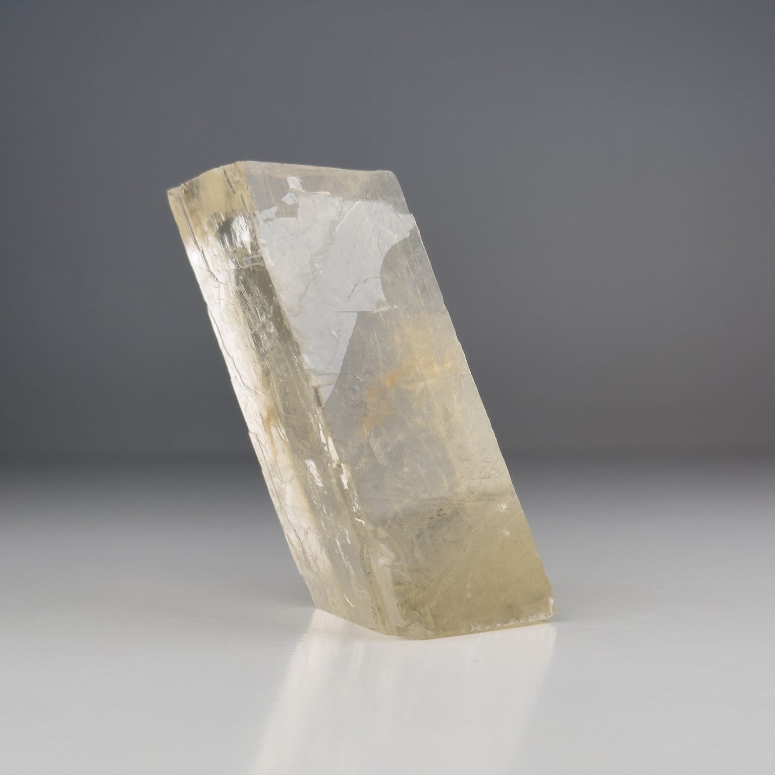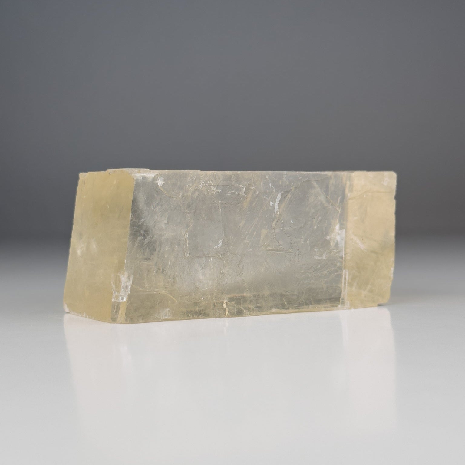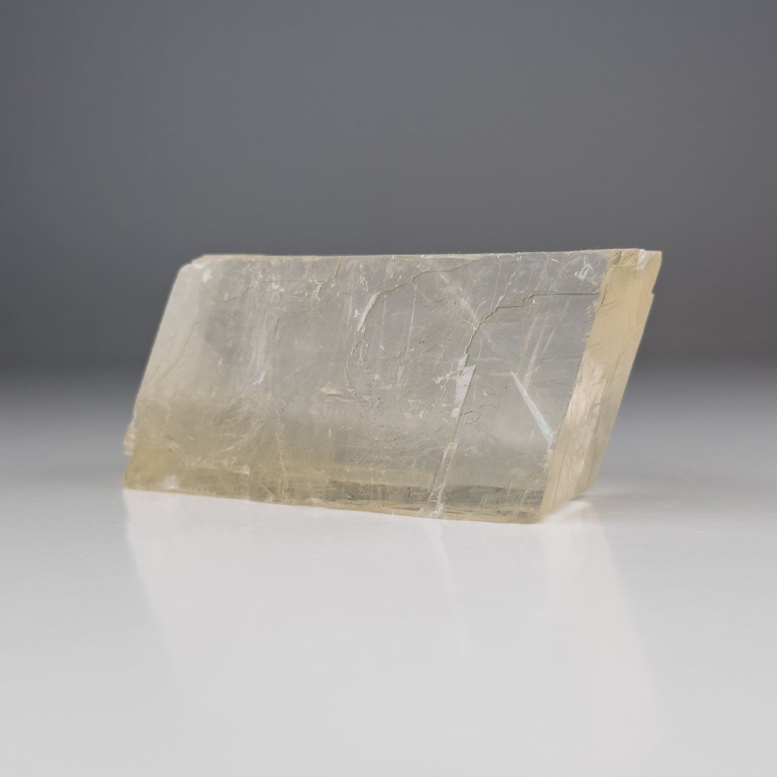 Optical Calcite, also known as Iceland Spar, is a clear and striking form of Calcite. She belongs to the hexagonal crystal system and is composed of calcium carbonate. With a modest hardness of 3 on the Mohs scale, she is relatively soft compared with many other minerals. Found in countries such as the USA, UK, Belgium, Czech Republic, Slovakia, Peru, Iceland, Romania and Brazil, she is known for her remarkable ability to split light into two rays, creating a doubled image when viewed through her. This natural gift makes her both fascinating to collectors and important in scientific history, as she was once used in optical instruments.