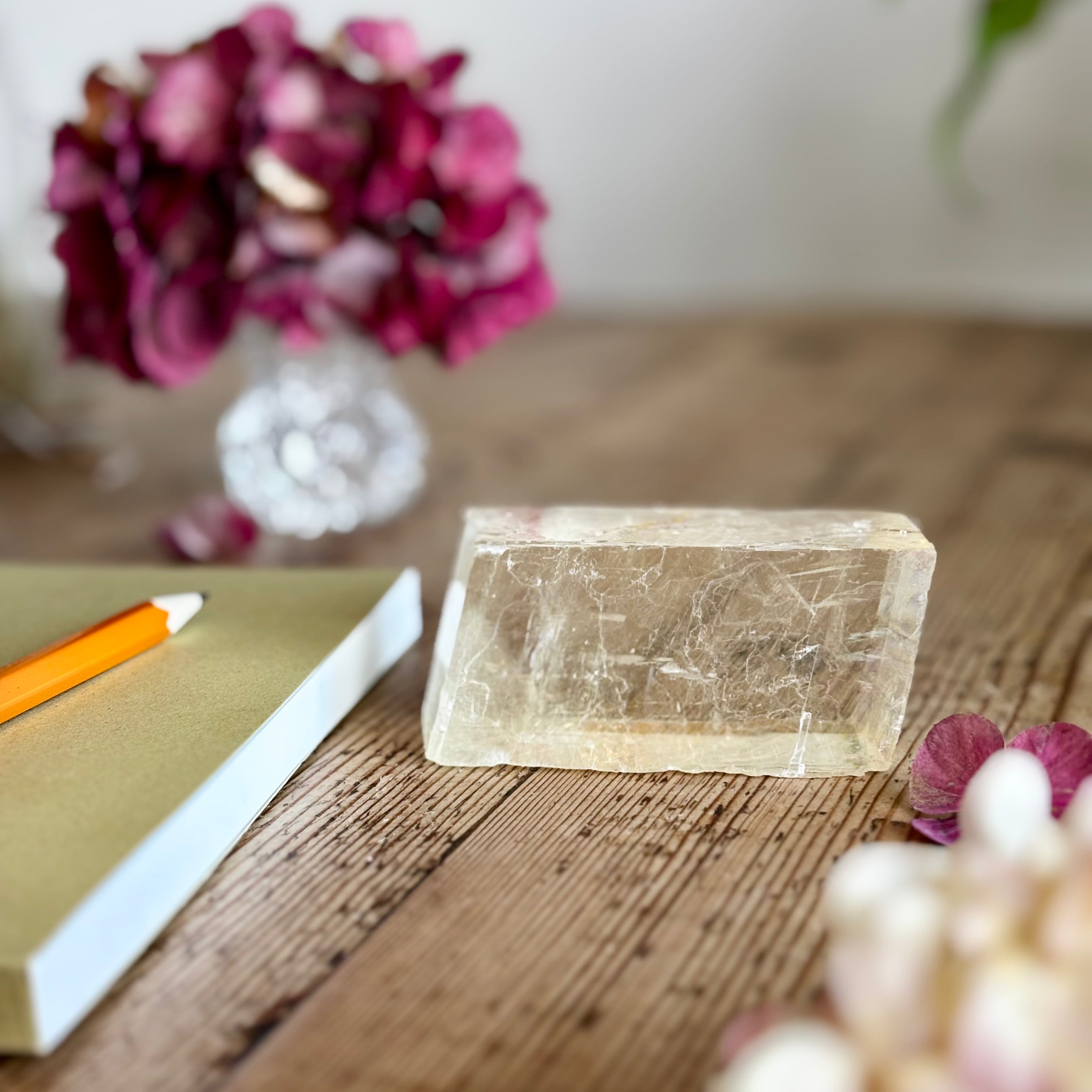 Optical Calcite encourages clarity and calm when stress or emotional turbulence arises. She has a gentle way of dissolving confusion and opening perception, helping one to see situations more truthfully and with greater understanding. By doing so, she lessens the weight of emotional stress and restores motivation.