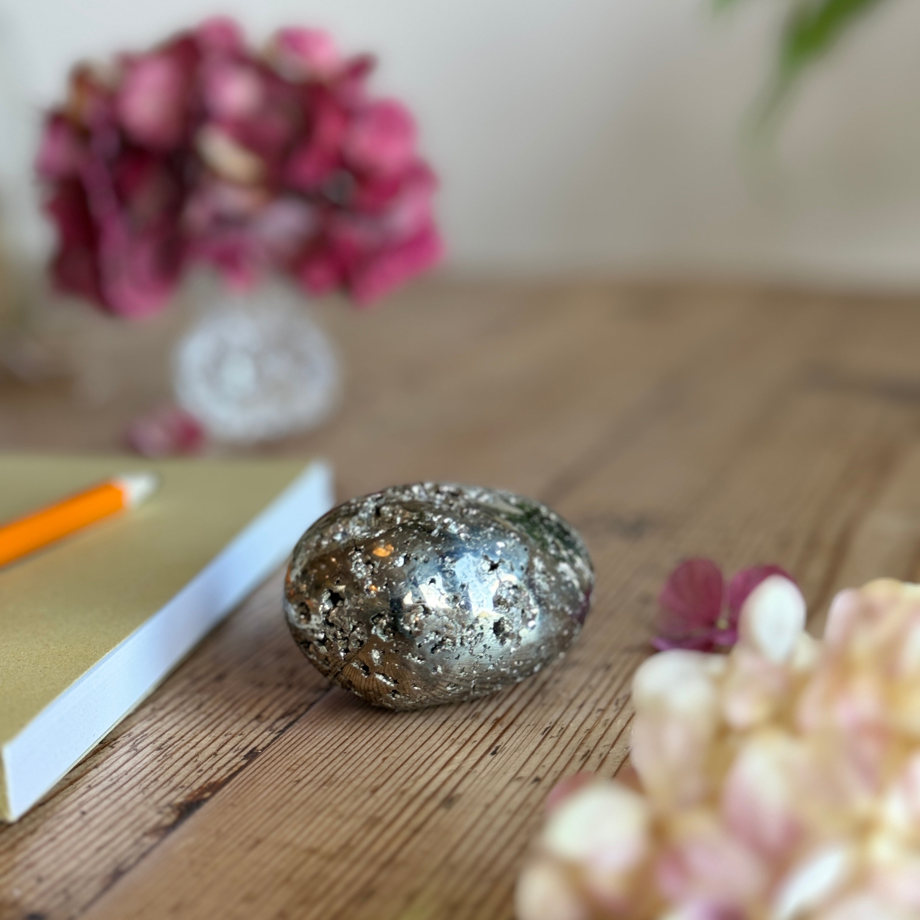 On an emotional level, Pyrite instils confidence and clarity. She helps dissolve feelings of inadequacy or servitude, promoting a positive and assertive outlook. For those who struggle with low self-esteem or feel overshadowed, she brings self-assurance and determination. Her bright energy fosters balance between instinct and logic, encouraging both creativity and analytical thought.
