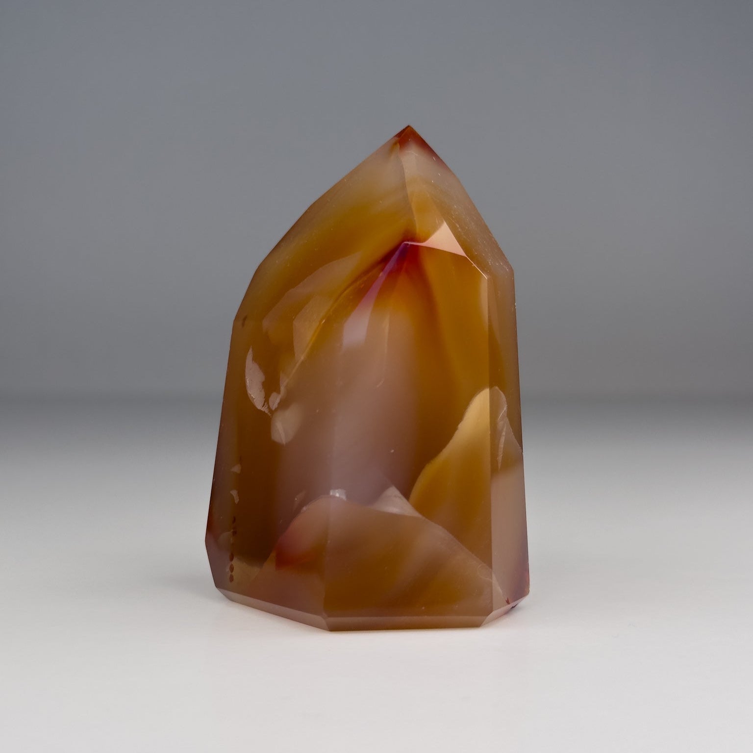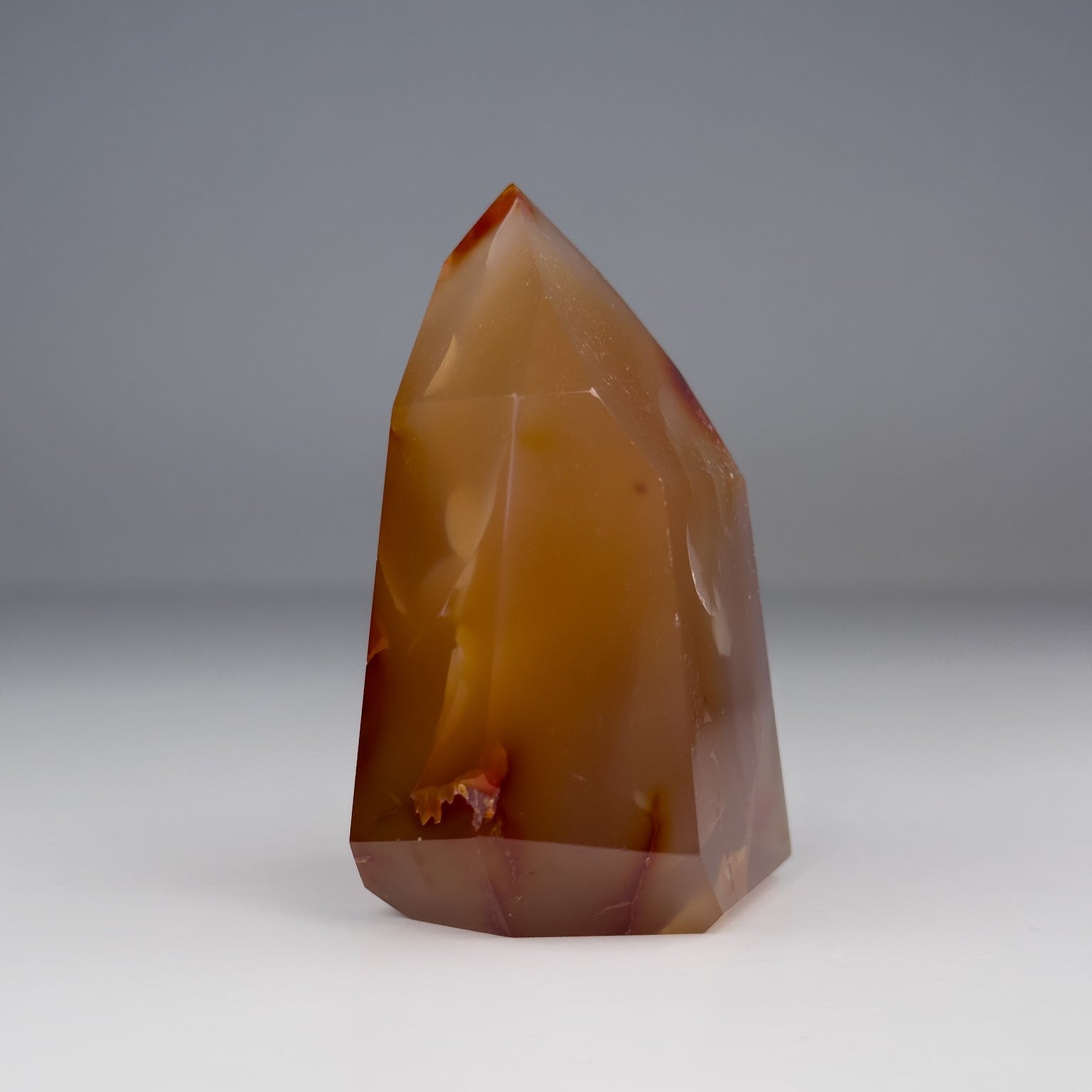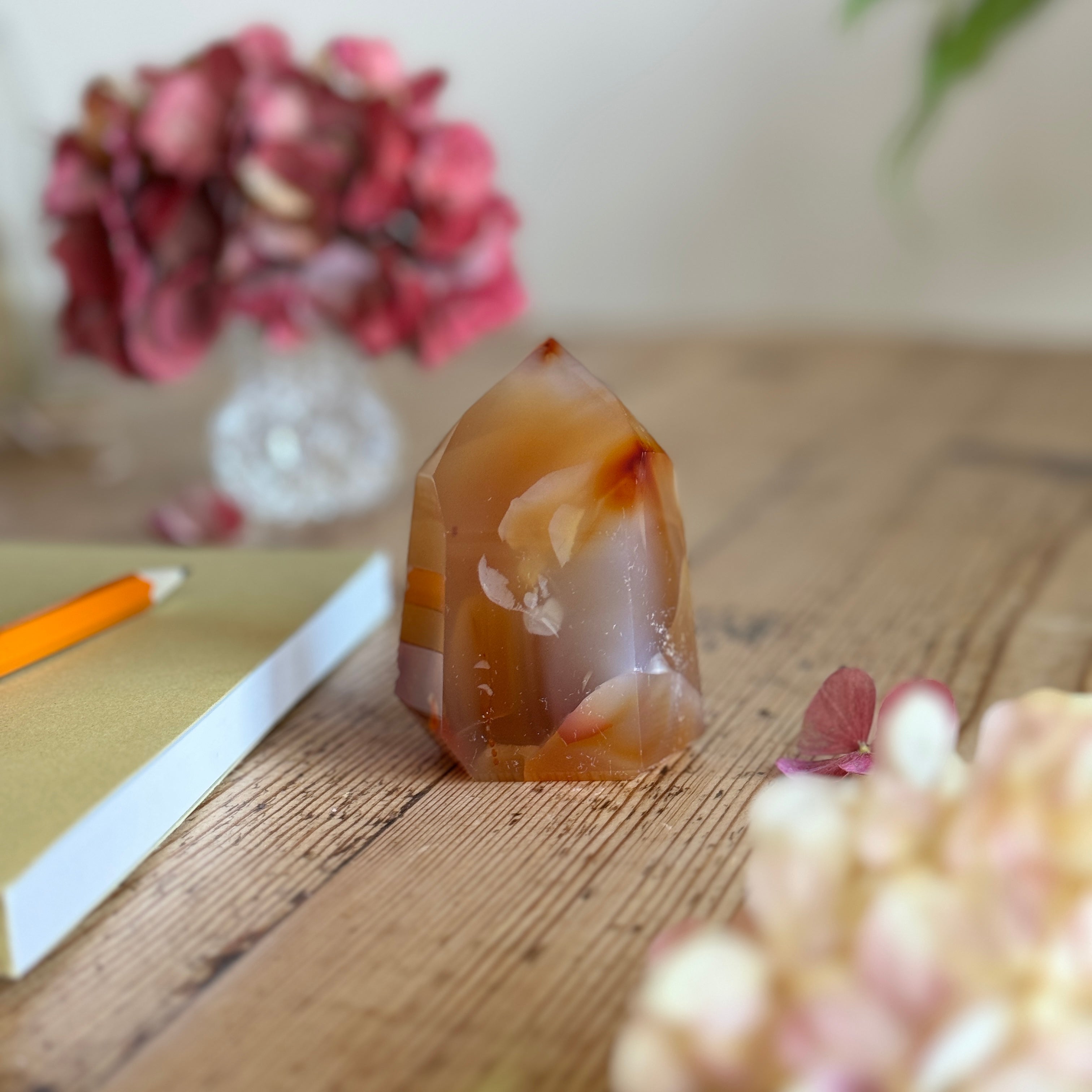 Spiritually she anchors one into the present moment and strengthens connection to the physical body. Carnelian dispels fear of death, reminding the soul of the natural cycles of life and renewal. She sharpens concentration during meditation, grounding wandering thoughts and aiding focus. A stone of abundance and drive, she supports success in business and helps manifest one’s purpose through action, perseverance and faith in life’s unfolding rhythm.