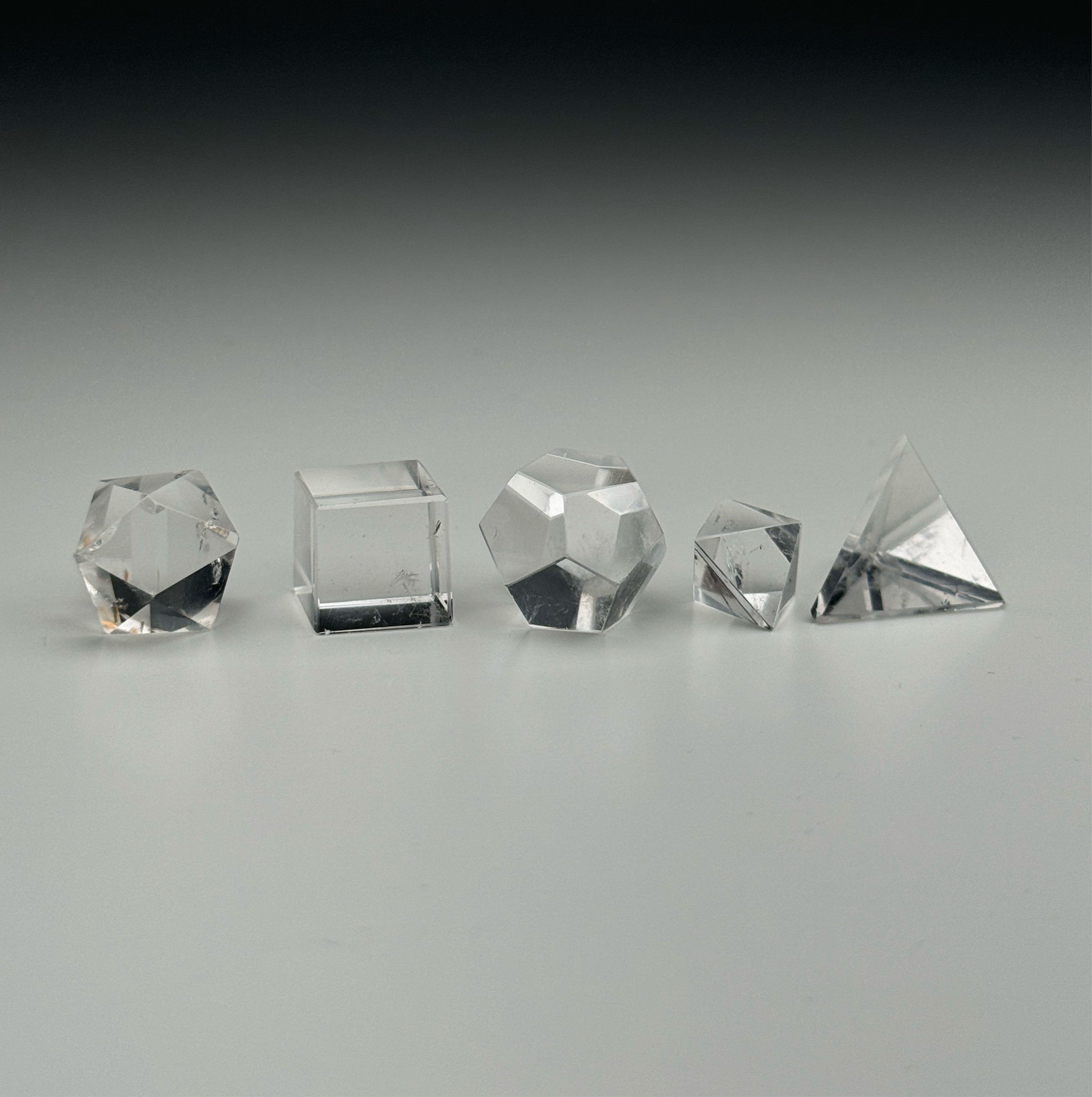 CLEAR QUARTZ PLATONIC SOLIDS SET